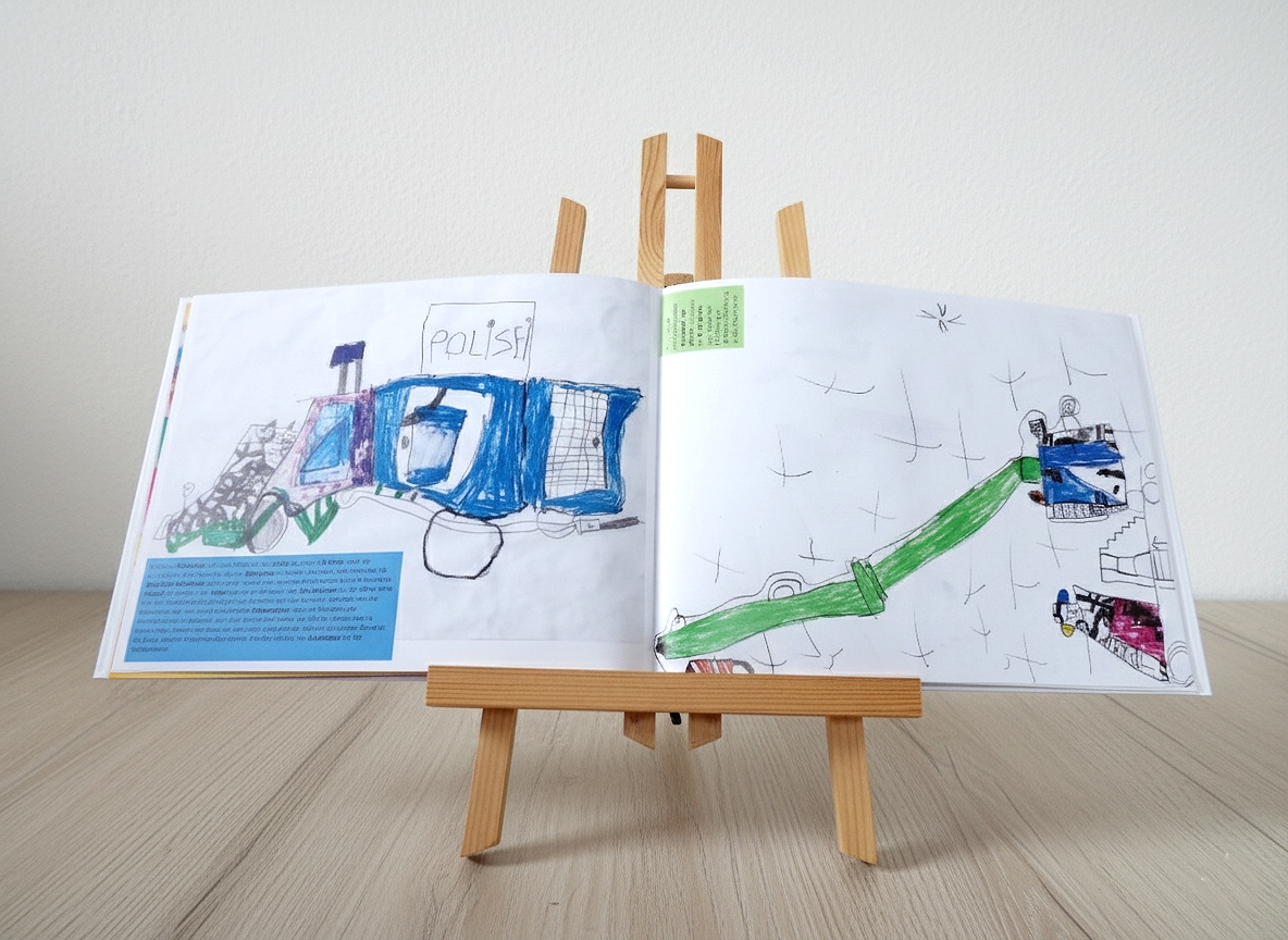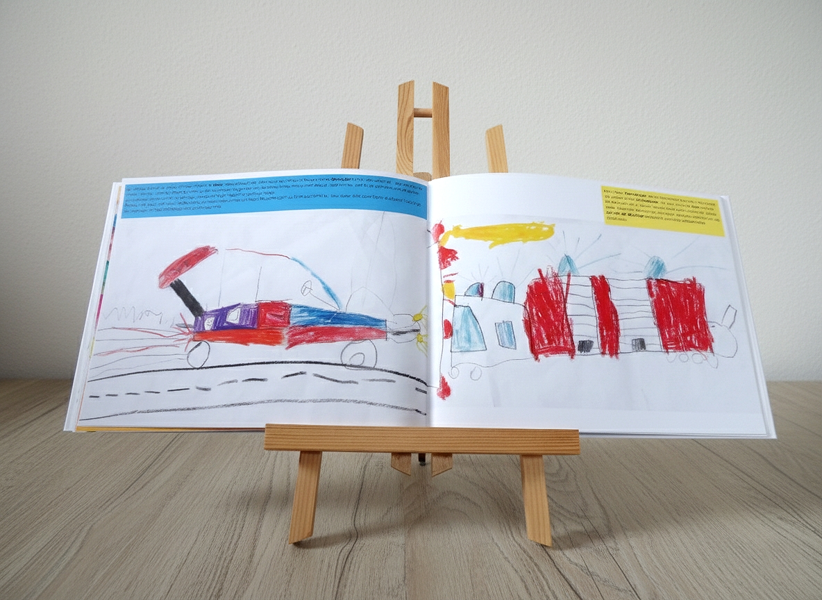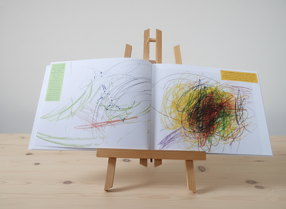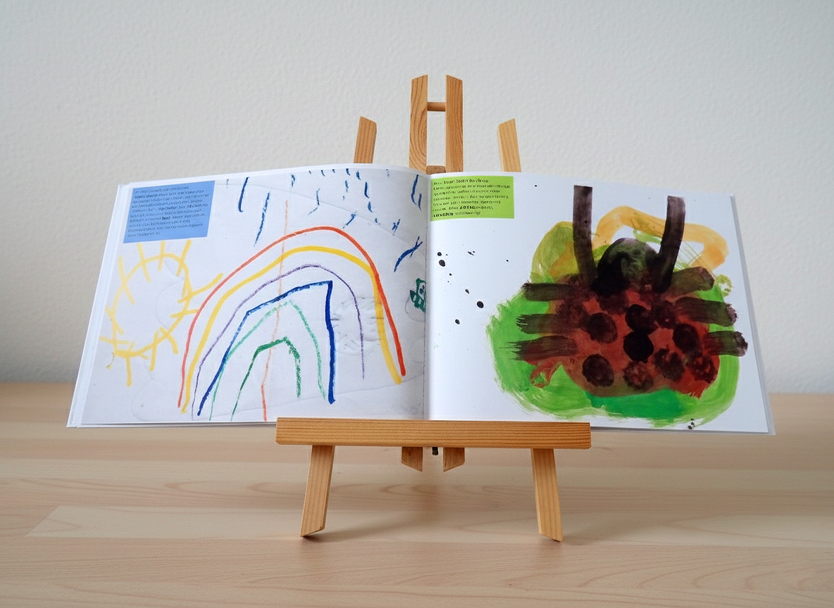 Es sammelt die von den Eltern und Kindern ausgewählten Kinderzeichnungen in einem ansprechenden Bildband, in welchem sie in eine schlüssige Reihenfolge gebracht und in die Entwicklungsphasen des Zeichnens eingeordnet sowie wertschätzend und informativ aus entwicklungspsychologischer Sicht kommentiert werden.