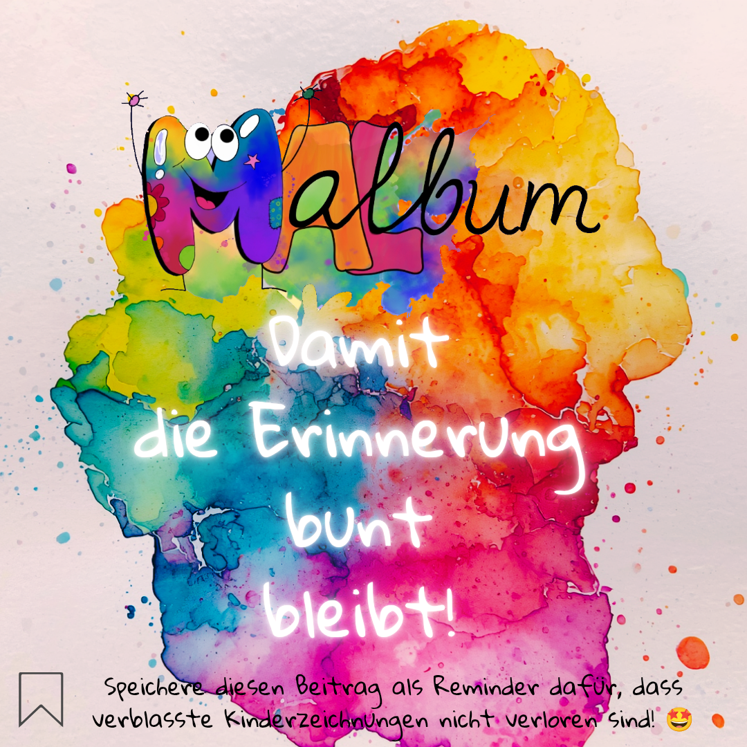 ❣️ Sichere die aussagekräftigsten und erinnerungsreichsten Kunstwerke deines Kindes in einem MALbum – von uns fachlich eingeordnet in die Malentwicklungsphasen und wertschätzend (niemals wertend!) und fundiert kommentiert! Damit eure Erinnerungen BUNT bleiben! 💚💛💜🩵🧡🩷